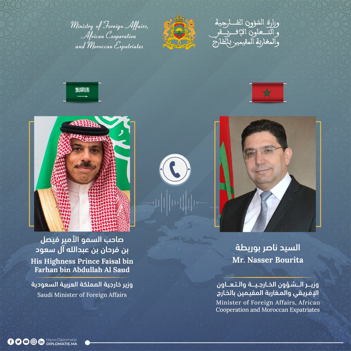Le ministre des Affaires étrangères, de la Coopération africaine et des Marocains résidant à l’étranger, Nasser Bourita, a eu ce vendredi 14 avril, un entretien téléphonique avec son homologue saoudien, Son Altesse le Prince Fayçal bin Farhan bin Abdullah.