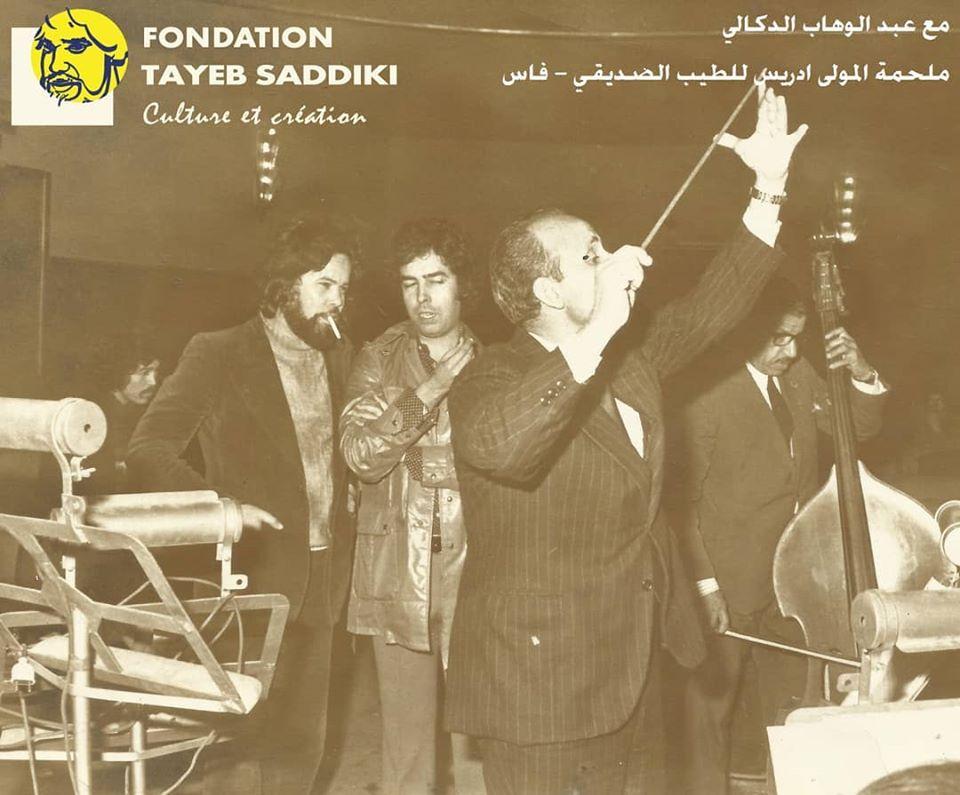 Tayeb Saddiki et Abdelwahhab Doukkali, lors des préparatifs de l’épopée théâtrale « Moulay Idriss ». Un spectacle initialement prévu à Rabat, qui fut joué à Fès en 1968 avec plusieurs centaines de participants et figurants.