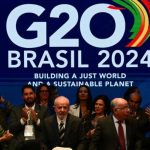 Ce planisphère, réalisé par l’Institut brésilien de géographie et de statistique (IBGE) et présenté au président Luiz Inacio Lula da Silva, met en avant les pays membres du G20, un forum économique rassemblant 19 nations ainsi que l’Union africaine et l’Union européenne, dont le Brésil assure la présidence tournante.