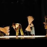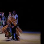 Certes, il y a un fil conducteur qui relie ces scènes, c’est l’action qui s’installe comme synonyme du non-répit. Cependant, le relâchement est indispensable pour retrouver l’énergie et continuer cette transe permanente. En effet, dès le premier moment, il faut soulever un fardeau qui ressemble à ces formes magnifiquement tissées par les femmes de la montagne. C’est le produit par excellence du ramassage du bois séché que les femmes doivent porter sur leurs dos. Ainsi, cette image de ces femmes courbées sous le poids de la charge nous rappelle la pierre de Sisyphe dans la mythologie grecque. Car il faut retourner tous les jours pour exécuter la même tâche. Cette marche – si lente entreprise d’habitude par les femmes de la montagne – est transformée sur scène en un mouvement chancelant habité par la volonté de retrouver l’équilibre. Les corps sont à la merci de ce corps étranger si lourd à porter. Cette scène d’ouverture, accompagnée par une musique annonçant la couleur de ce qui arrive par la suite et donne le coup d’envoi d’un rythme où le repos est quasi – absent. L’essoufflement est palpable car on entend cette respiration d’un corps à cinq, qui ne cesse de se tortiller et manifeste le désir de faire franchir l’espace et le temps.