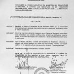 Dans une résolution, adoptée en plénière le 13 novembre courant, le Sénat exprime, dans l’article 1, « son soutien au Secrétaire Général des Nations Unies et à la communauté internationale pour parvenir à une solution pacifique et négociée du différend créé autour du Sahara Occidental » ; dans l’article 2, son appui au plan d’autonomie proposé par le Royaume du Maroc comme la base d’une solution pacifique, juste, durable et satisfaisante pour les parties, dans le cadre du respect de la souveraineté et de l’intégrité territoriale du Royaume du Maroc » ; et dans l’article 3, « Exhorte le gouvernement du Paraguay à adopter une position similaire et à en faire état devant les fora internationaux ».
