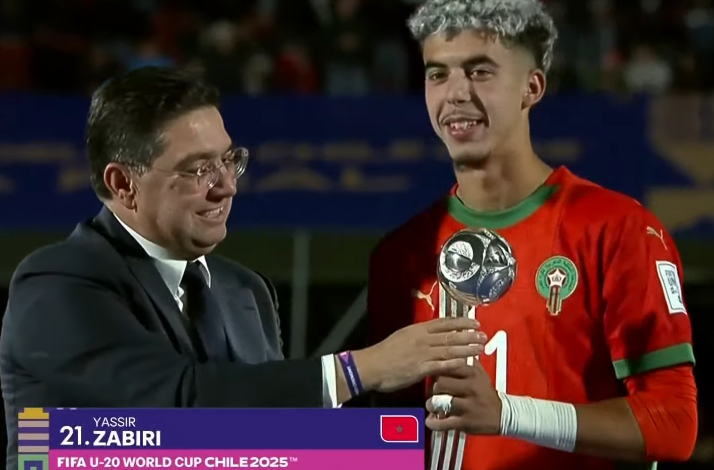 L’intenable Lionceau Yassir Zabiri, qui a signé les deux magnifiques buts de la finale contre l’Argentine, a été sacré second meilleur buteur de la Coupe du Monde U20.  Le trophée lui a été remis par le Ministre des Affaires étrangères, de la Coopération africaine et des Marocains résidant à l’étranger, M. Nasser Bourita.