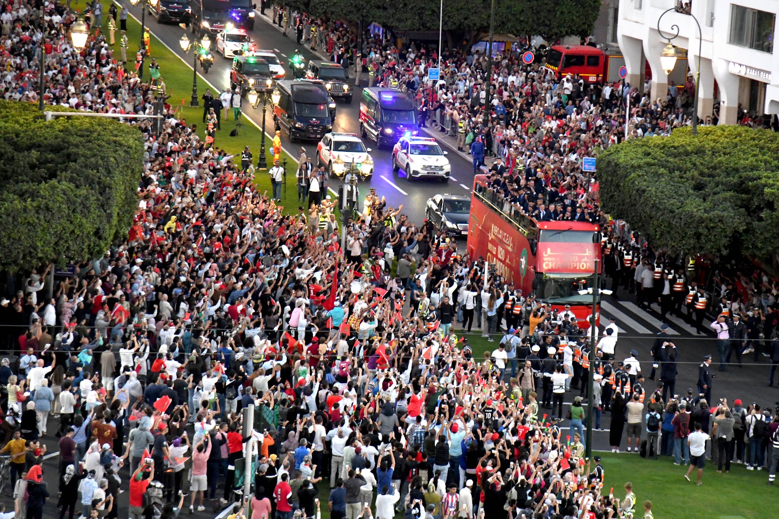Les Lionceaux embarqués dans un bus à impériale ont salué les foules géantes qui scandaient « Siiir… Siiir » et « Dima Maghrib » »…