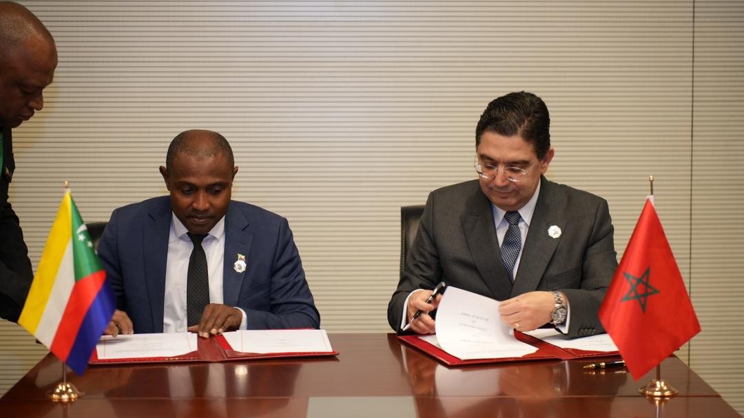 Cet accord a été signé par le ministre des Affaires étrangères, de la Coopération africaine et des Marocains résidant à l’étranger, M. Nasser Bourita, et son homologue comorien, M. Mbae Mohamed, en marge de la 48ème session ordinaire du Conseil exécutif de l’Union Africaine (UA).