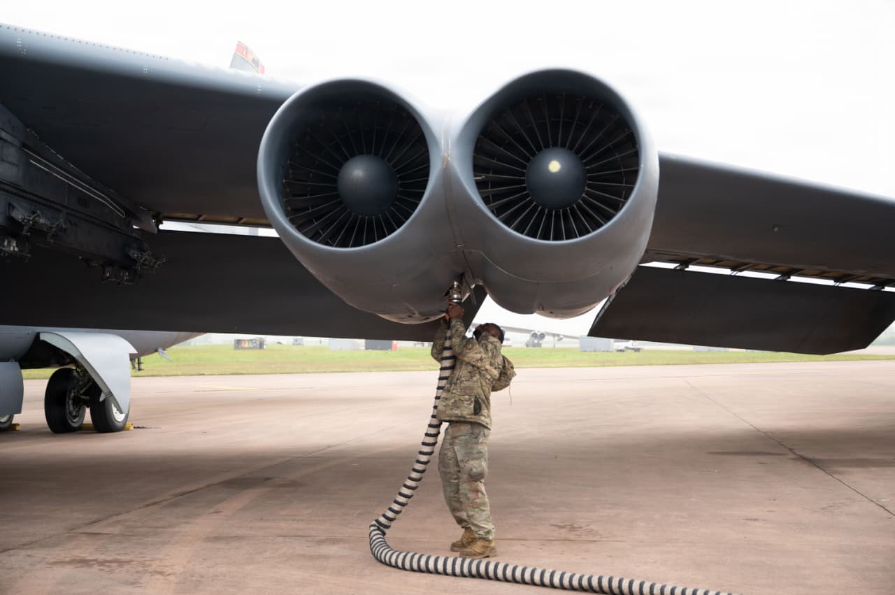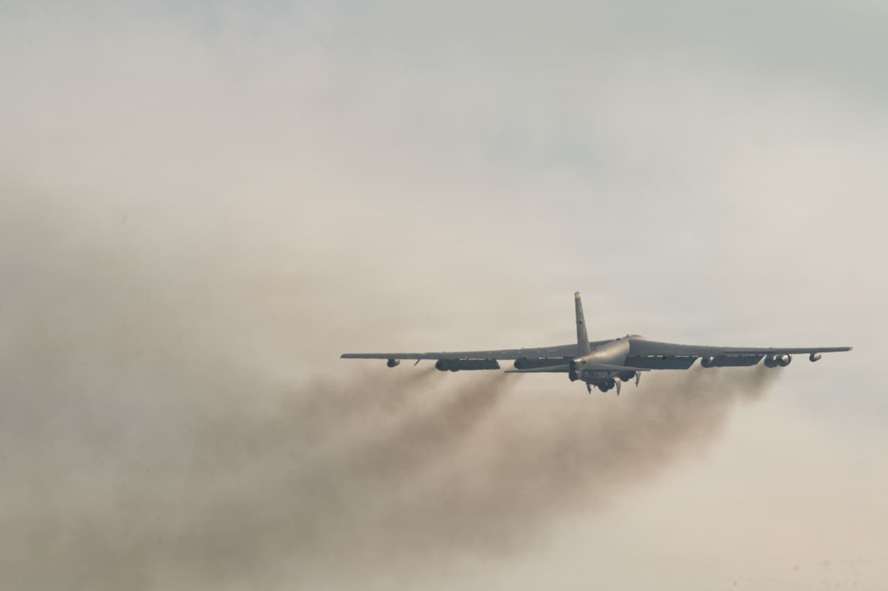 Un vol combiné de deux bombardiers stratégiques B-52H Stratofortress de l’US Air Force (USAF) et de quatre F-16 Fighting Falcon des Forces Royales Air (FRA) au-dessus du Cap Draa a marqué le lancement du premier cours de qualification de contrôleur d’attaque terminale conjoint accrédité du Maroc, le 23 avril 2026.