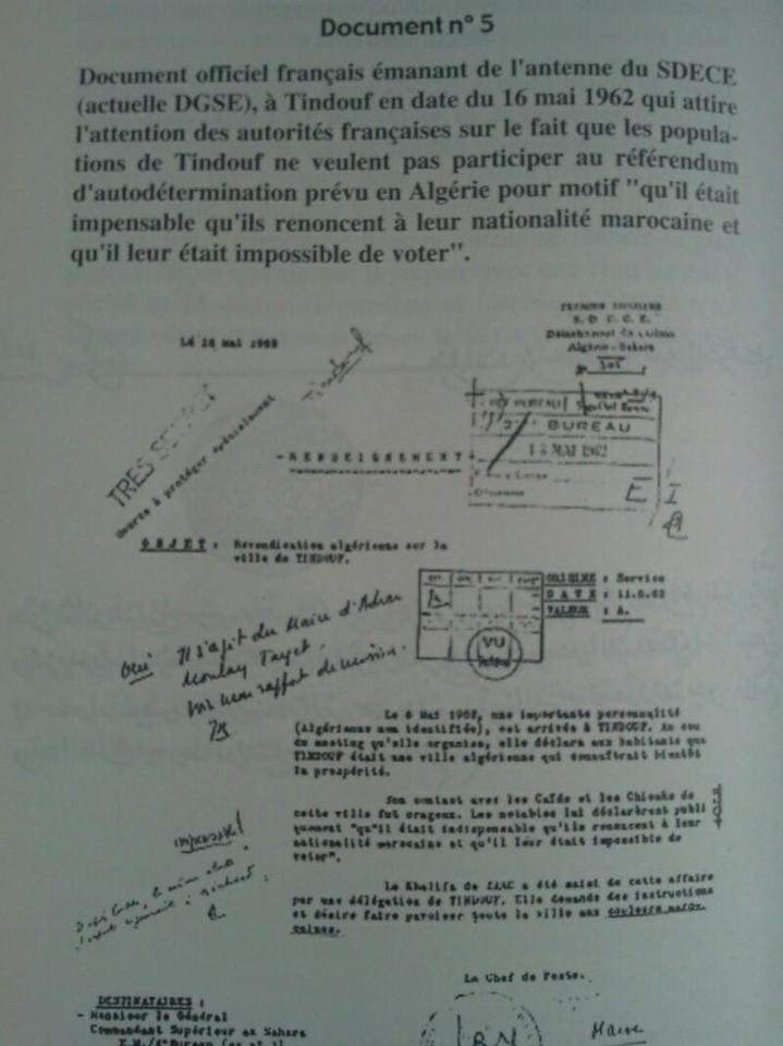 « Les populations de Tindouf ne voulaient pas participer au référendum d’autodétermination alors prévu en Algérie au motif qu’il était impensable qu’ils renoncent à leur nationalité marocaine » et qu’ »il leur était impossible de voter » audit référendum d’autodétermination du peuple algérien frère », certifie le document.