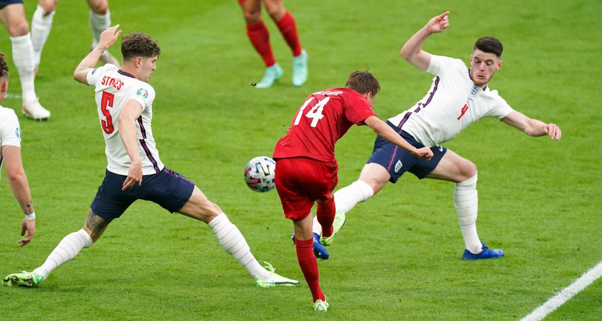 Les Anglais portés par un public acquis à leur cause sont rapidement entrés dans le match, signant de bonnes séquences offensives, mais les Danois n’ont pas tardé à se montrer dangereux. Ils ont été les premiers à ouvrir le score grâce à un magnifique coup franc inscrit par le jeune Mikkel Damsgaard à la 30ème minute.