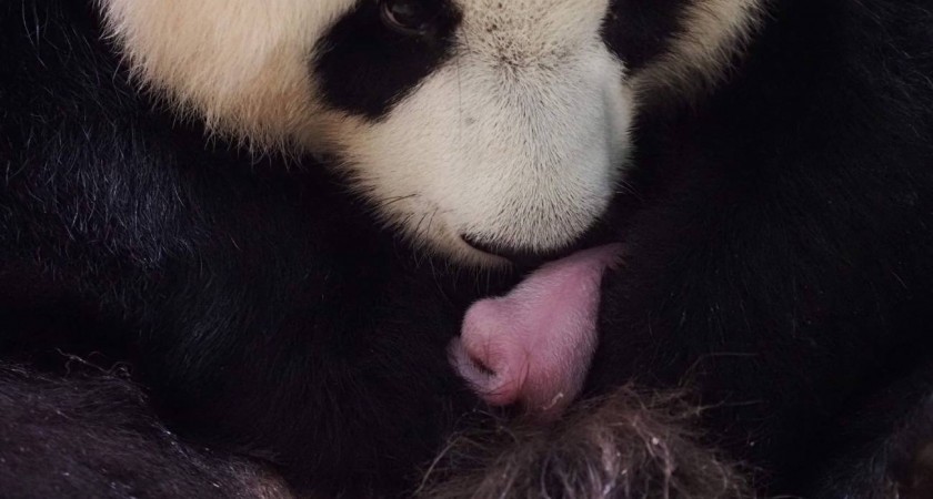Une soigneuse du Centre de recherche sur le Panda géant de Chengdu, venue spécialement pour les naissances, a réussi à s’emparer de l’un des bébés pandas pour lui prodiguer les soins et le placer en couveuse. Ce premier bébé pesait 149 grammes à la naissance, un poids « très rassurant » pour un bébé panda.