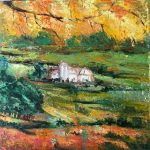 Ce paysage d’eau aux nymphéas ne peut pas ne pas nous rappeler les nymphéas de Claude Monet et peut être nous pousser à inscrire le travail de Mahacine Al Ahrach dans la lignée impressionniste, même si je suis convaincu qu’un artiste peintre se doit d’emprunter à ses prédécesseurs. Mahacine Al Ahrach a bien des procédés propres à elle pour sublimer le réel. Elle oppose souvent des lignes du ciel avec celles de de la terre. Cette opposition libère l’artiste peintre de la réalité, lui donne des ailes et une indépendance.