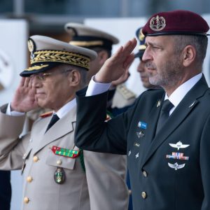 Accueil/Vidéo-Diapo. L’hymne national marocain retentit au QG du ministère israélien de la Défense. Coup de projecteur sur la première visite du Général de Sa Majesté, Belkhir El Farouk, en Israël./farouk-kochavi farouk-kochavi