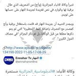 Dans la même « mise au point », l’APS a tenté de refiler la patate chaude au quotidien « Ennahar », même si ce dernier n’a fait que reprendre sur son compte twitter un scann de la dépêche APS où le terme « حظيرة » (bergerie) a bel et bien été utilisé. Ce n’est qu’après coup, que l’expression « الجزائر بلد أصبح في حظيرة الكبار » (l’Algérie est dans la BERGERIE des grands) a été remplacée par « الجزائر « في مصاف الدول الكبرى » (l’Algérie dans la cour des grands).