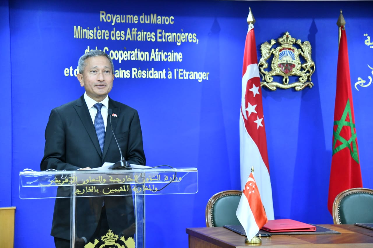 Lors d’un point de presse conjoint avec le ministre des Affaires étrangères, de la Coopération africaine et des Marocains résidant à l’étranger, M. Nasser Bourita, à l’issue de leurs entretiens, le chef de la diplomatie singapourienne, qui effectue une visite de travail au Maroc, a souligné que le Royaume représente un modèle de tolérance, de vivre-ensemble, d’ouverture et de respect des minorités religieuses, estimant qu’il s’agit de valeurs « spéciales et précieuses ».