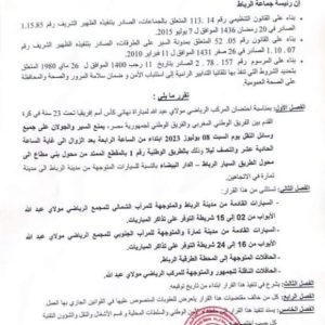 وتستثنى من هذا القرار، السيارات القادمة من مدينة الرباط والمتوجهة للمرآب الشمالي لمعلب الأمير مولاي عبد الله الأبواب من 2 إلى 15 شريطة التوفر على تذاكر المباراة، والسيارات القادمة من مدينة تمارة والمتوجهة للمرآب الجنوبي للملعب الأبواب من 16 إلى 24، وكذا الحافلات التوجهة إلى المحطة الطرقية الرباط، والحافلات الناقلة للجمهور والمتوجهة للملعب.