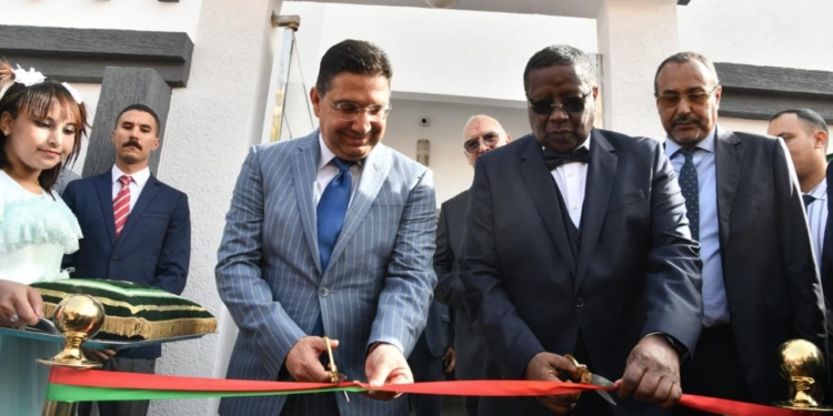 أشرف ناصر بوريطة وزير الشؤون الخارجية، ووزير الدولة وزير الشؤون الخارجية والتكامل الإفريقي والتعاون الدولي والتشاديين في الخارج، الناطق الرسمي باسم الحكومة في جمهورية تشاد، عبد الرحمن غلام الله، اليوم الأربعاء بالداخلة، على تدشين القنصلية العامة لجمهورية التشاد.