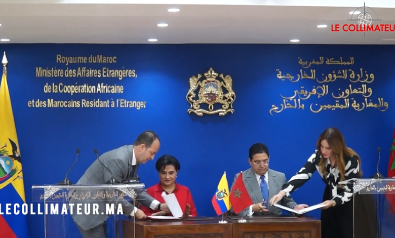 وفي هذا الصدد، نوه الجانبان بالتوقيع على آليتين قانونيتين، وهما مذكرة تفاهم بشأن التكوين الدبلوماسي وتبادل الخبرات بين المعهد المغربي للتكوين والأبحاث والدراسات الدبلوماسية والأكاديمية الدبلوماسية “غالو بلازا لاسو” التابعة لوزارة الشؤون الخارجية الإكوادورية، ومذكرة تفاهم بشأن إرساء آلية للمشاورات السياسية الثنائية.