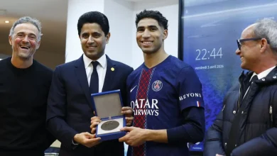 ناصر الخليفي يكرّم أشرف حكيمي بمناسبة 200 مباراة مع باريس سان جيرمان/فيديو