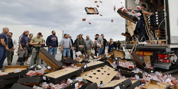 تخريب 5 شاحنات مغربية محملة بالفواكه و الخضروات لهجوم في كاتالونيا من قبل الفلاحين المضربين الإسبان