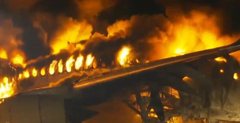مشاهد مرعبة.. احتراق طائرة على متنها 400 راكب بمطار هانيدا الياباني