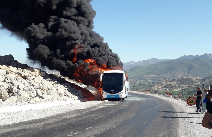 حريق هائل يدمر حافلة على الطريق الوطنية بين تطوان وشفشاون