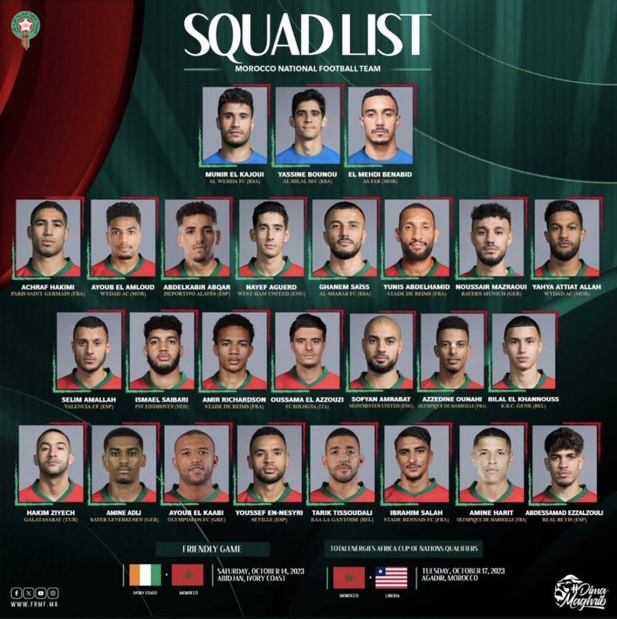 VOICI LE GROUPE DU MAROC POUR LA CAN 2023