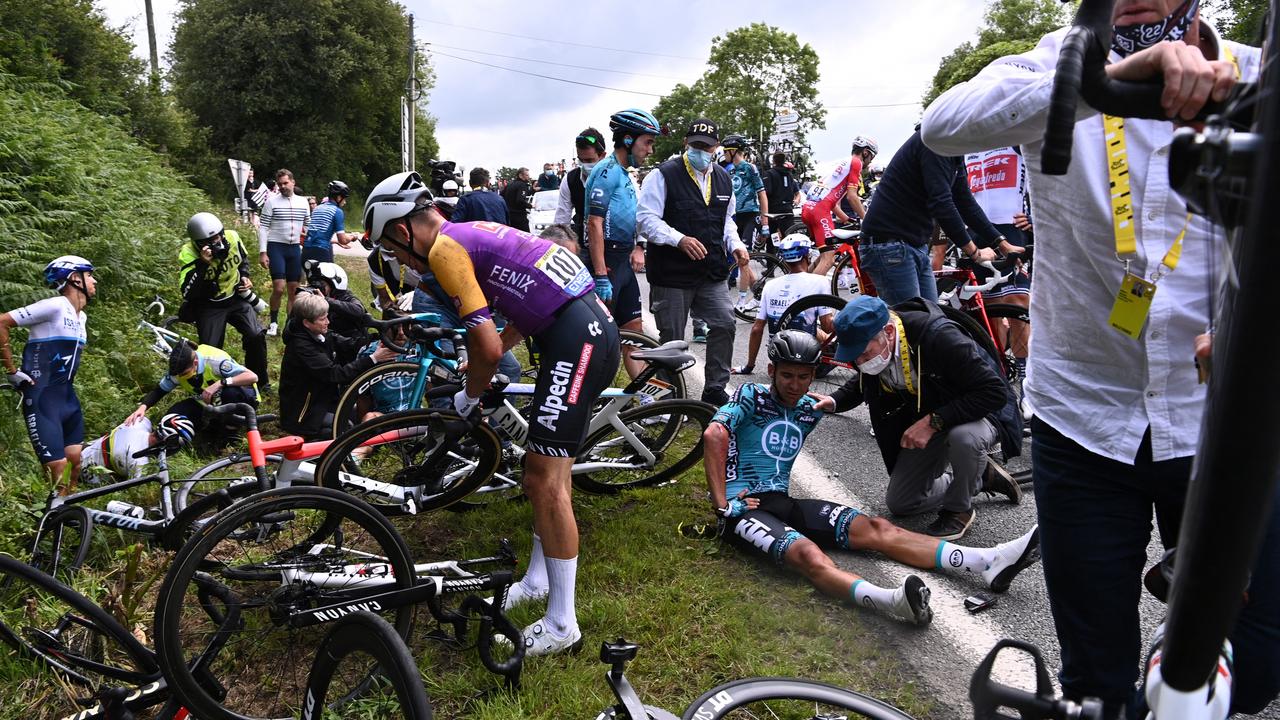 Vidéo. Tour de France cycliste: Grosse chute dans le peloton provoquée par une spectatrice