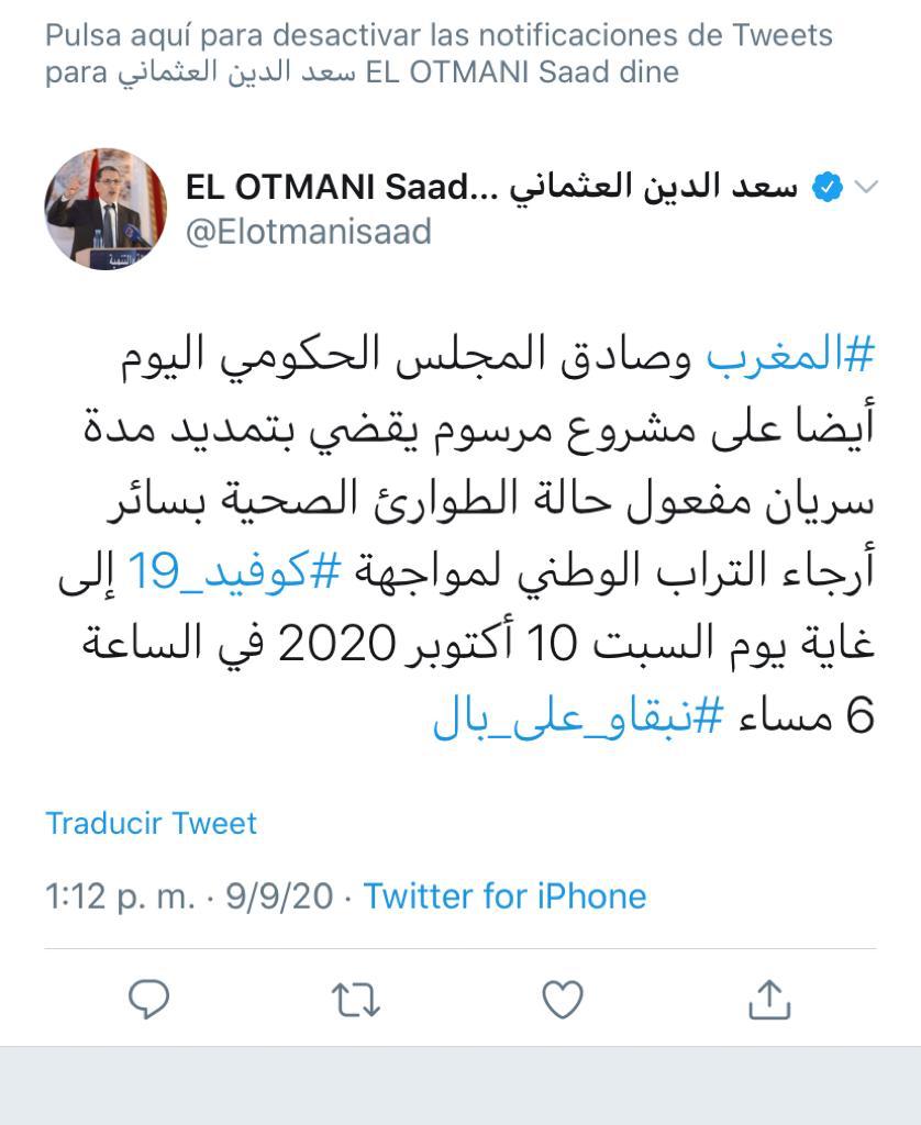 Prolongation de l’état d’urgence sanitaire jusqu’au 10 octobre. Quand El Othmani donne la primeur de l’information aux abonnés de son compte tweeter!!