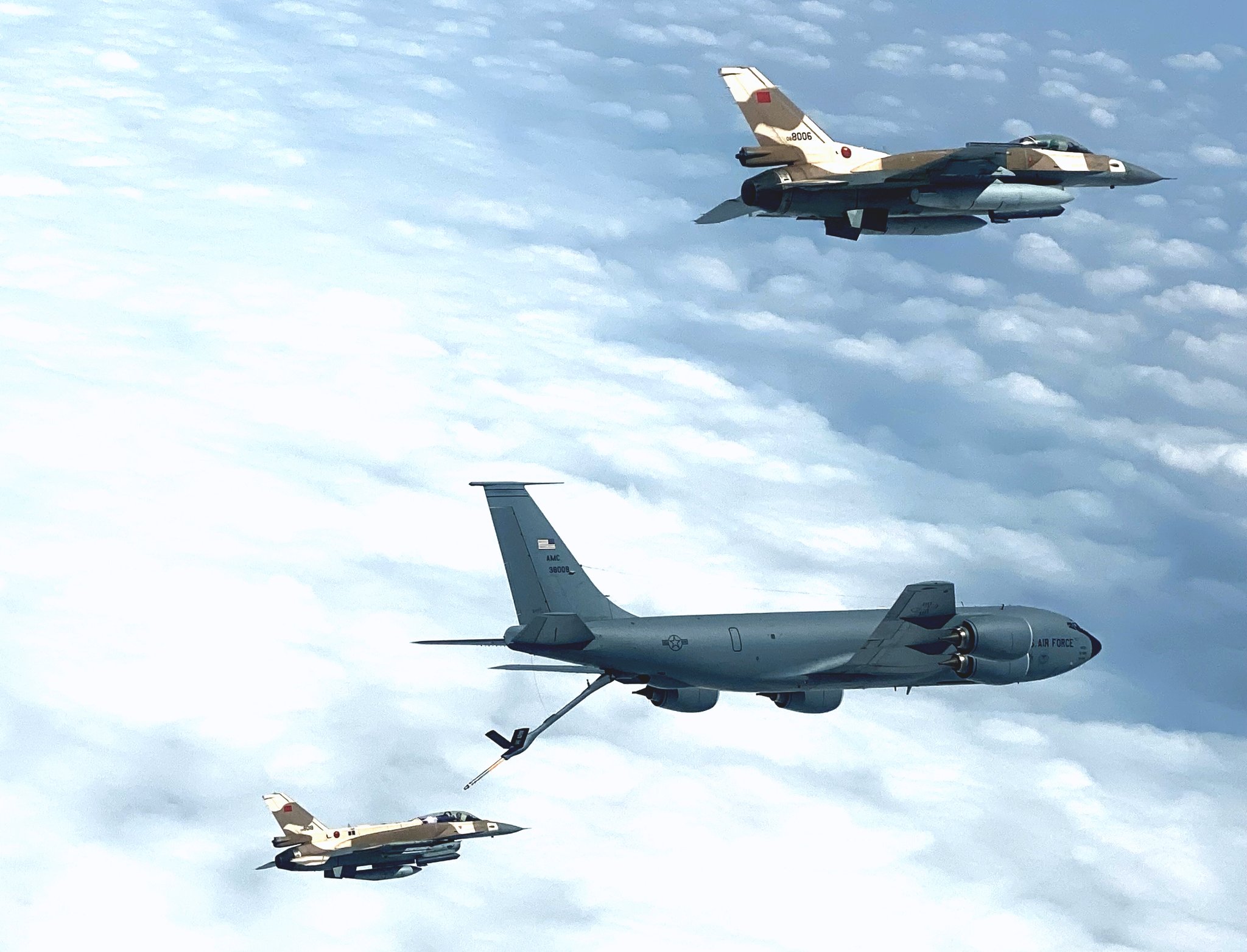 Photo inédite. Opération de ravitaillement en vol de F-16 marocains depuis un Boeing KC-135