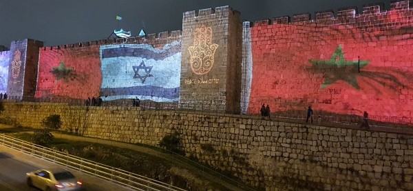 Les murs de la vieille ville de Jérusalem éclairés aux couleurs du Maroc et d’Israël