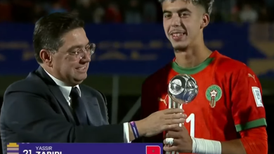 Le trophée du second meilleur buteur Yassir Zabiri remis par Nasser Bourita