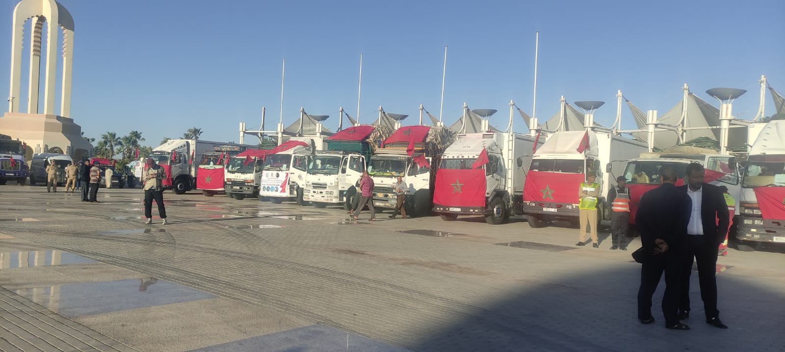 Laâyoune: Un impressionnant convoi de camions remplis d’aides humanitaires s’ébranle vers les régions touchées par le séisme (vidéo-diapo)
